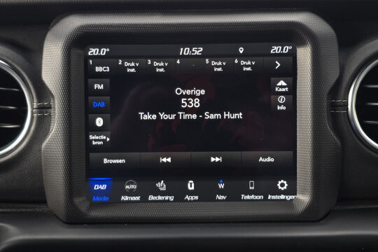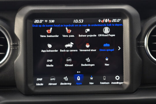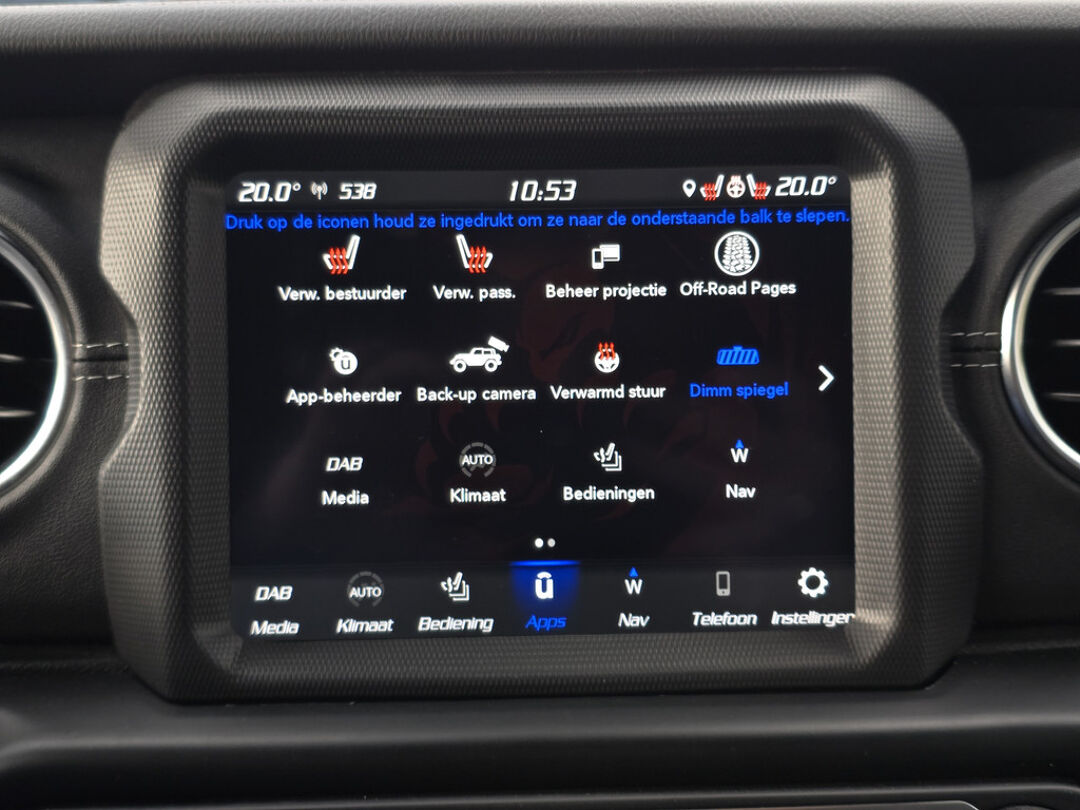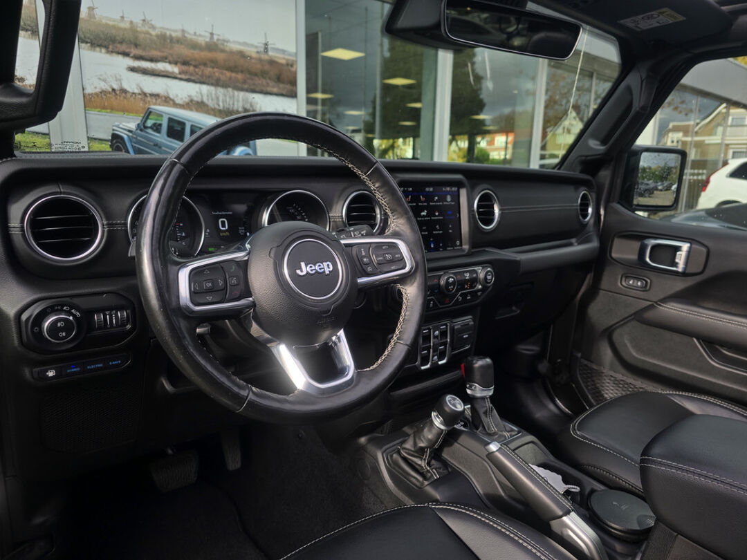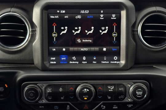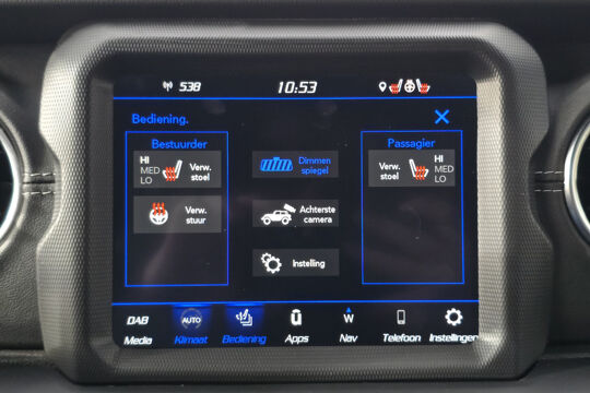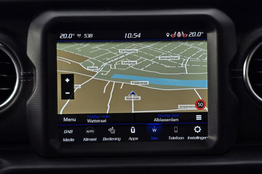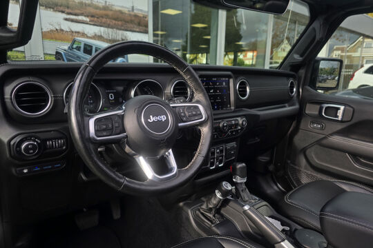 Wat deze Wrangler écht bijzonder maakt, is de Sky One-Touch Power Top – een elektrisch bedienbare softtop waarmee je met één druk op de knop het hele dak opent. In een paar seconden geniet je van de open lucht, het zonlicht en dat onmiskenbare gevoel van vrijheid waar Jeep om bekendstaat. Geen gedoe met panelen of ritssluitingen, maar pure beleving, het hele jaar door.