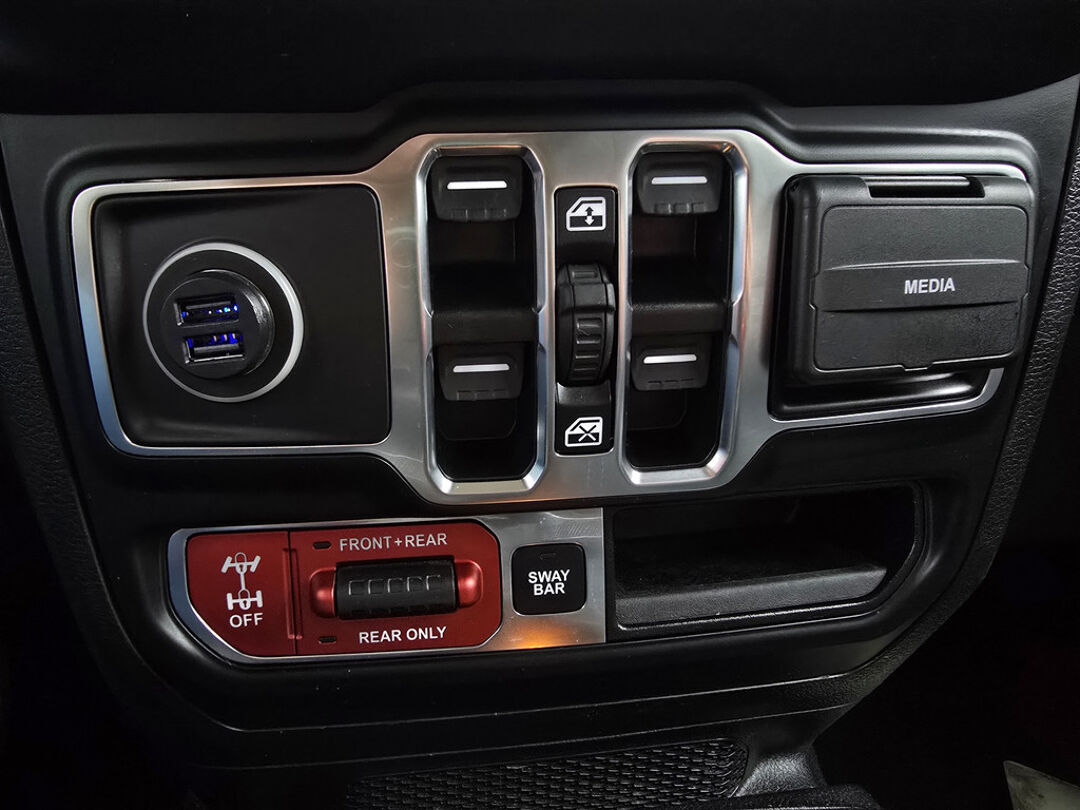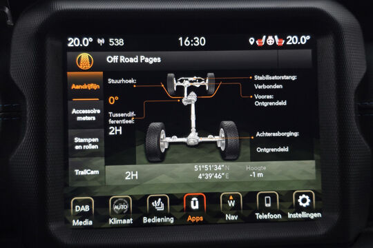 De afneembare trekhaak voegt een extra dosis functionaliteit toe, of je nu een boot, caravan of mountainbikes meeneemt, de Wrangler is overal voor te porren.