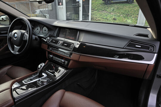 Ervaar pure rijbeleving met deze schitterende BMW 5-serie Touring 525d High Executive uit 2015. Deze prachtige Spacegrau Metallic auto valt direct op met zijn stijlvolle en tijdloze uitstraling, terwijl het warme Dakota-leder in Zimtbraun het interieur een luxe en uitnodigende sfeer geeft. Perfect onderhouden en afkomstig van de tweede eigenaar, straalt deze BMW klasse en betrouwbaarheid uit.