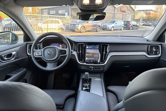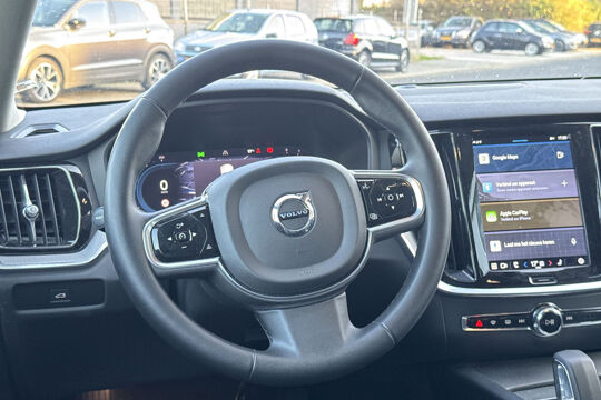 Stijlvolle en sportieve Volvo V60 2.0 B3 Plus Dark met een luxe uitstraling en een zeer complete uitrusting. Deze V60 combineert comfort, veiligheid en moderne technologie in één elegante stationwagen. Dankzij de krachtige en efficiënte B3 mild-hybrid motor rijdt de auto soepel en zuinig, terwijl de Plus Dark uitvoering zorgt voor een extra sportieve look met zwarte accenten.